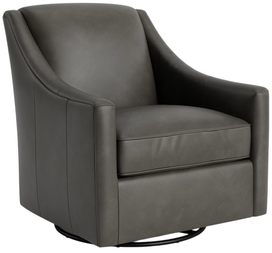 Features elegantly sloped arms and swivel capacity