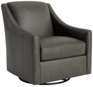 The Corinna Leather Swivel Chair blends classic styling with modern function due to its elegantly sloped arms and swivel capacity. Its modest scale is suitable for various spaces. The chair has a tight back and a loose seat cushion upholstered in fine leather.Read More