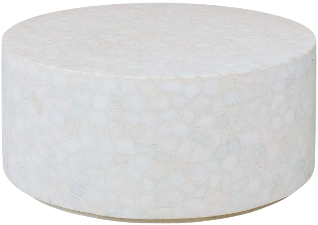 Evoking a coastal feeling reminiscent of the south of France, the Corsica Round Cocktail Table moves with ease into your indoor or outdoor living space. Constructed of hollow concrete, the silvery pebble finish is an artist's rendition applied via ultra-durable water transfer. The Corsica's plinth-based round design conforms easily to most seating plans, while the subtle and variegated tone of the pebble pattern adapts to any color scheme.