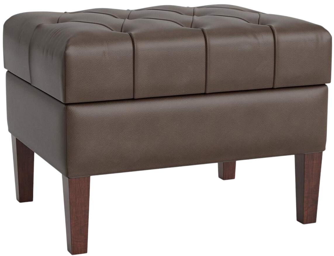 An ottoman completes the room. A Dover Leather Ottoman does that and so much more. Completely customized to your liking, this ottoman complements your sofa or sectional or adds a playful contrast that ties it all together. Webbed seating construction means you can comfortably settle your feet or a decorative tray, or even use it as a seat. A tufted top and tall, tapered wood legs in a walnut finish give it a clean look. Choose your leather from a range of possibilities.