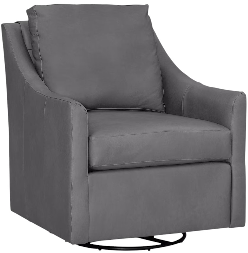 Enjoy the relaxing and responsive swivel and sway of the Sloan Leather Slope Arm Swivel Chair. The Sloan’s modest dimensions are right for any room, on its own or paired up. Meanwhile, its curved arms embrace both your comfort as well as a sleek, genre-crossing transitional style. Choose any Bassett leather to upholster your chair(s), knowing that the supple leather will warm to the personal patina of a much-loved seat. The Sloan is also available as a stationary chair with wood legs.