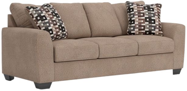 Transitional and right on trend. This queen sleeper sofa’s upholstery is a delightful change from the ordinary, with hints of soft brown giving the gray hue added depth. A built-in memory foam mattress easily pulls out to accommodate overnight visitors. It’s punctuated with chic accent pillows in an eye-catching, stylized stripe design.Read More