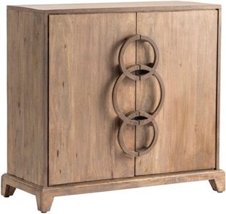 The Crestview Collection Bengal Manor Ring Cabinet is made of wood with a medium-brown finish. Two cabinet doors feature three interlocking rings that give the storage unit a striking look. A cable management hole adds more versatility to this piece so it can be used for media or as an accent piece.Read More