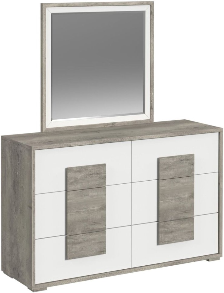 Accent your bedroom with the eye-catching design of the San Matteo Dresser with Mirror. Constructed of durable engineered wood set in a striking dual toned finish, this piece is sure to become a focal point in any space. The white panels instantly draw the eye and perfectly complement the light toned.Read More