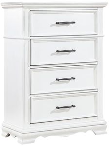 Maximize your bedroom's storage capabilities with this elegant white wood four-drawer chest, designed to blend seamlessly with any decor. Constructed from a durable combination of solid wood and engineered wood, this chest boasts a pristine white finish that brightens your space.Read More