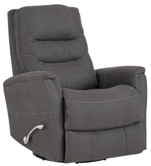The 243 Genesis is a medium-scale glider recliner with a full 360-degree swivel base. The chair features a sleek modern look, a solid foam track arm, and a pad-over chaise for extra leg support. The polished aluminum handle is both stylish and functional, and adds a modern, chic finish to this streamlined rocker recliner.Read More