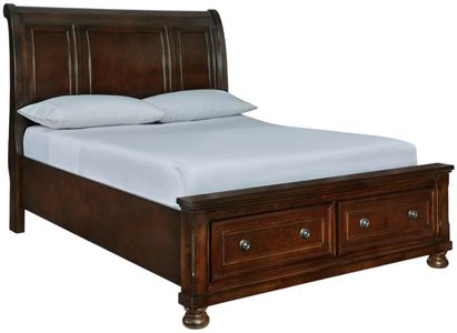 This Porter Brown Queen Sleigh Storage Bed features a classic sleigh design with a rich brown finish, adding elegance to any bedroom. It includes built-in storage drawers beneath the bed, offering practical space-saving solutions. This stylish and functional bed combines timeless design with convenience, perfect for enhancing both style and organization.Read More