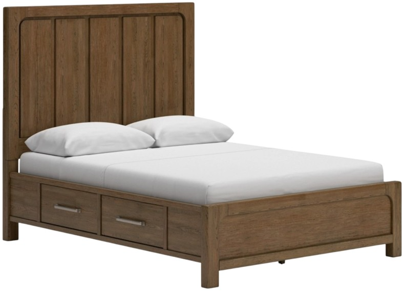 This queen panel bed with storage sits comfortably at the intersection of modern lodge and farmhouse aesthetics. Your warm and welcoming disposition is reflected in its charming architectural elements and light brown glazed finish. Storage drawers are effective space-savers, defining your bedroom with reliable function and style.Read More