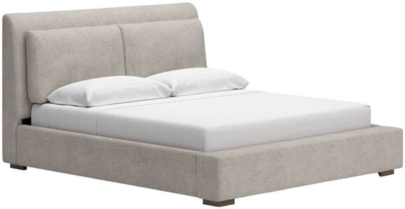 This California king upholstered bed sits comfortably at the intersection of modern lodge and farmhouse aesthetics. Your warm and welcoming disposition is reflected in its subtly tapered headboard and all-over upholstery. Even with its poise, the bed remains practical. Loose pillows on the headboard keep comfort a priority.Read More