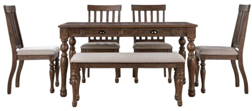 Set includes the Joanna dining table, 4 side chairs and bench