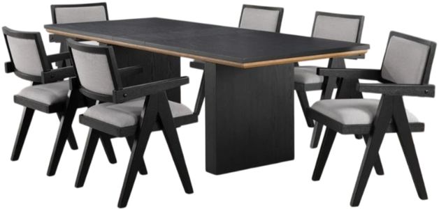 The Magnolia arm chair dining set offers high style angular lines and comfortable seating. At its heart lies an 80-inch table finished in a sleek ebony stain with sand trim exuding modern elegance. Accompanied by the magnolia arm chair boasting angular lines and a surprisingly comfortable sea.Read More
