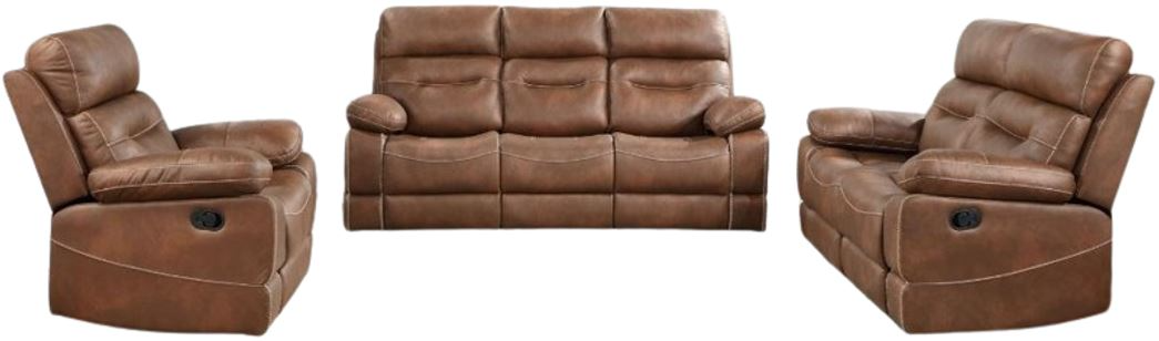 Set includes manual reclining sofa, loveseat and recliner