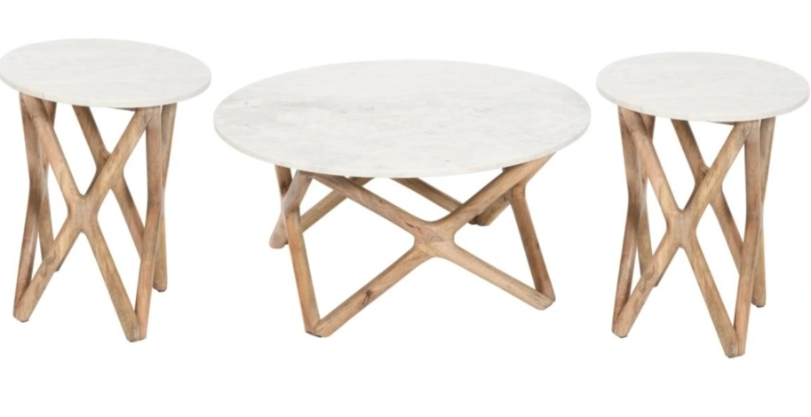 Complete living room ensemble: The 3-Piece set features one 36″ Round white marble top Cocktail Table and two 20″ Round white marble end tables to complete your living room with one package. Each item also sold separately.