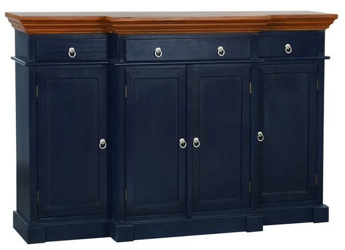 The Brookline Four Door Credenza, in a sophisticated dark navy blue, exudes elegance and modern style. Its sleek design features ample storage behind four paneled doors, perfect for organizing essentials while enhancing any room with its refined aesthetic and practical functionality.Read More