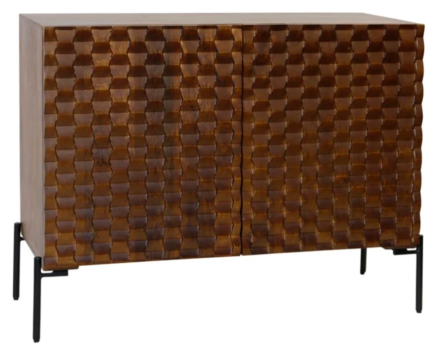 The Carved Tobacco Brown Cabinet exudes rustic charm and sophistication. Crafted from solid wood, it features intricate carvings and a rich tobacco brown finish. With ample storage space, this versatile piece adds elegance and functionality to any room.Read More