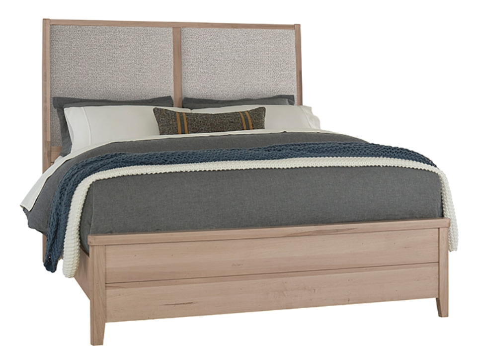 Upholstered bed with footboard storage boast a refined classic look that will stand the test of time. Styled with simple lines; the canted headboard is slightly angled for comfort. Two drawers in the footboard of the bed offer up plenty of convenient storage for extra bedding.Read More